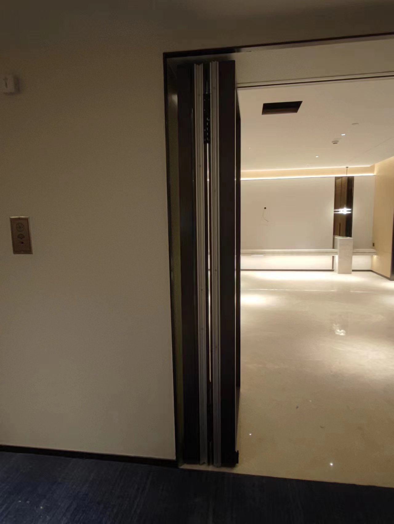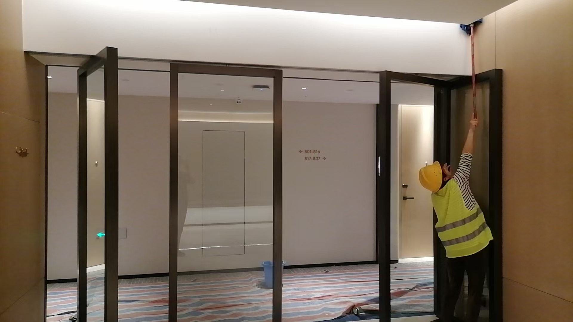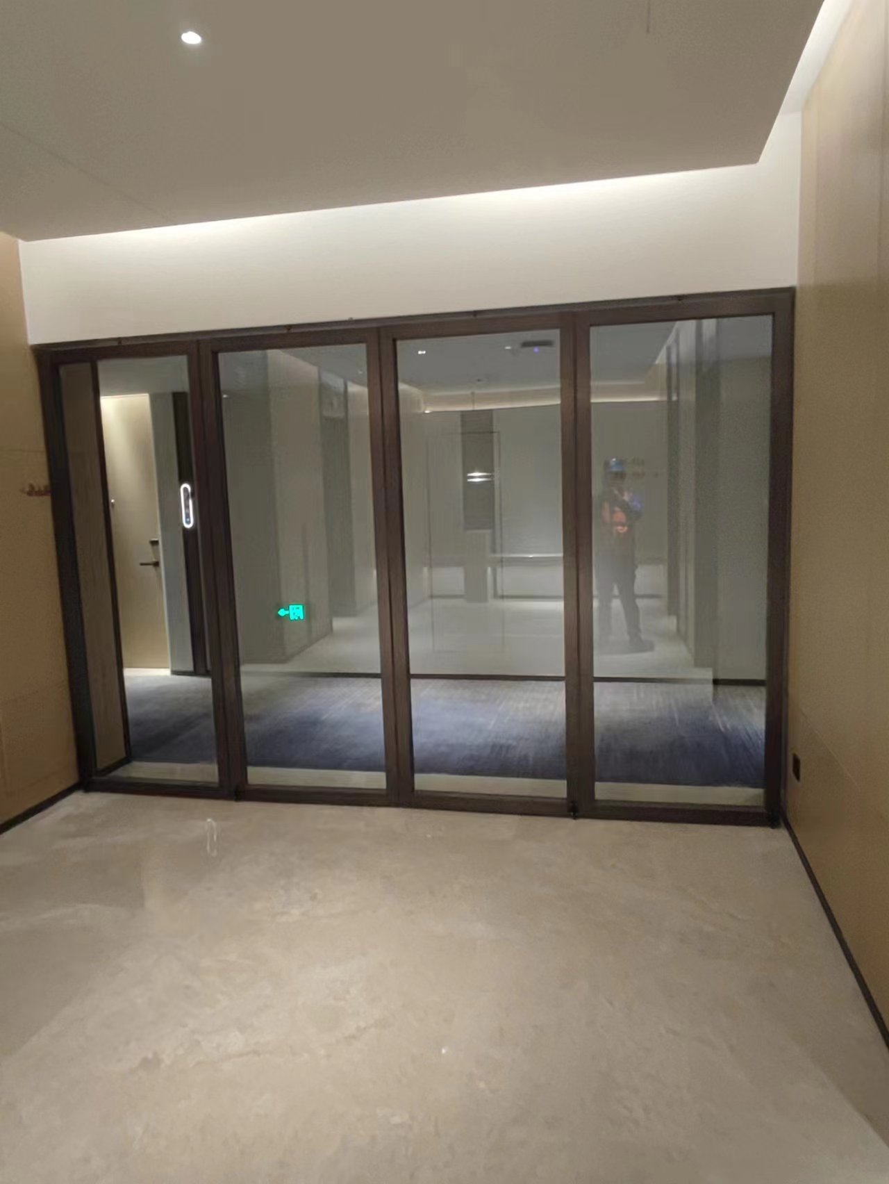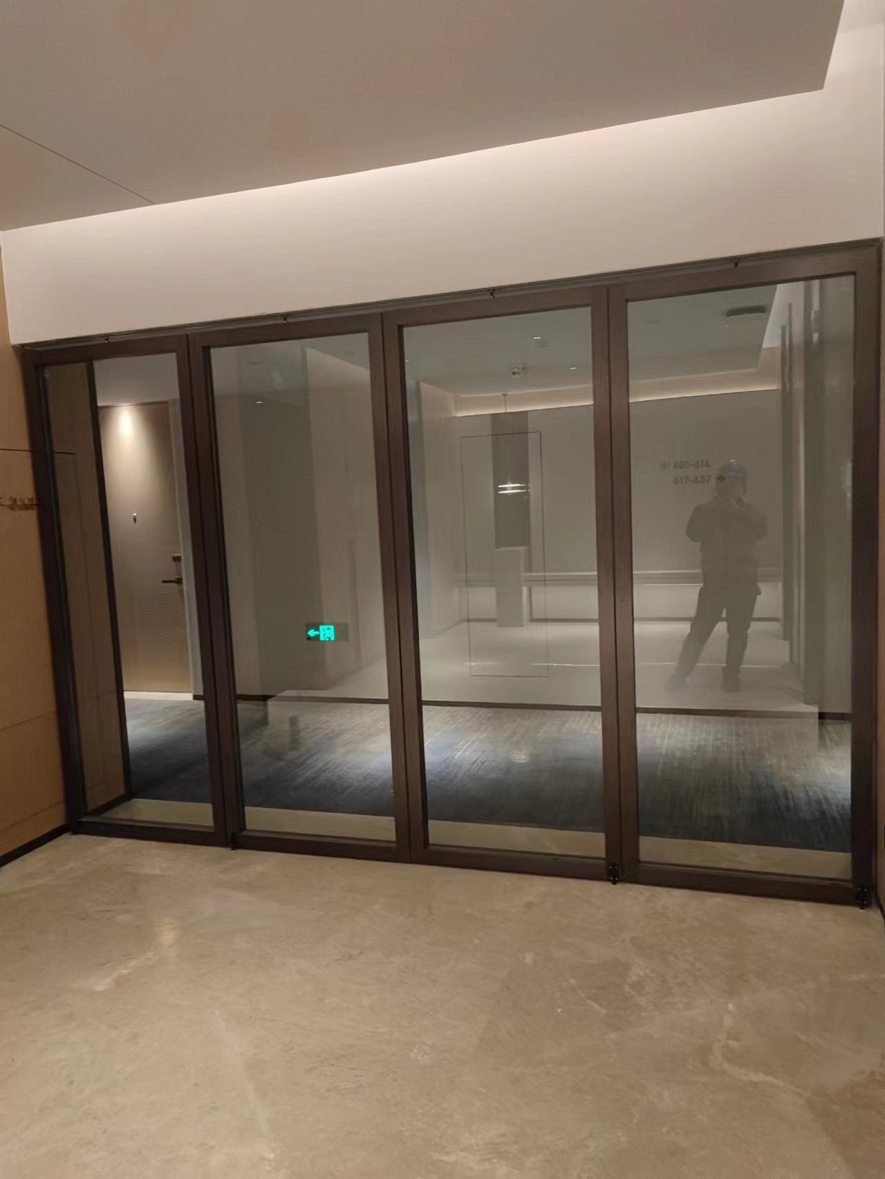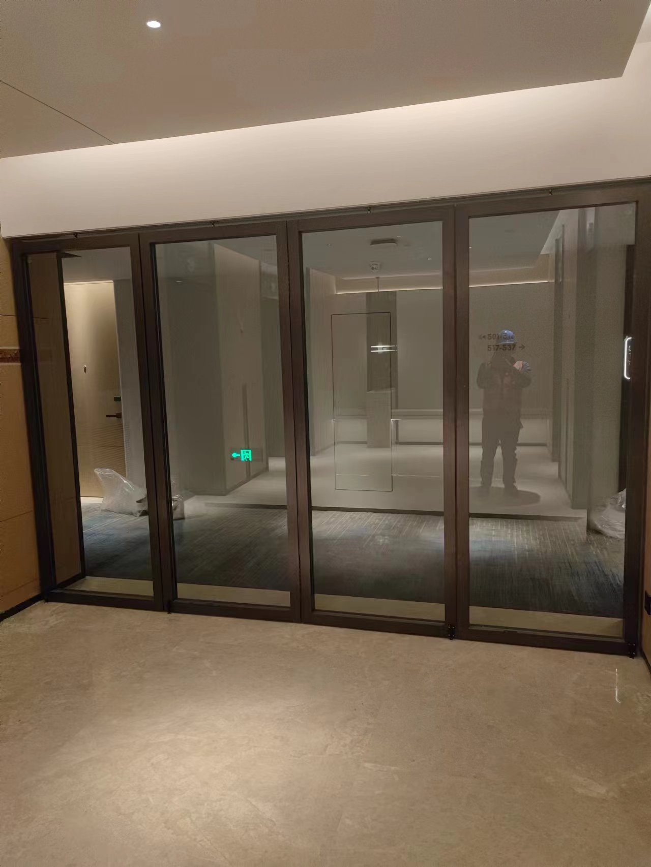 东莞嘉辉会酒店,作为东莞市知名酒店,我司有幸参与到该项目的建设中来,是该项目业主方对我司实力的充分信任。该项目的玻璃活动隔断共约80多平方米,我司承担了此次全部活动隔断的设计、施工与安装任务。活动隔断集中于会议室。业主方要求,活动隔断需要能够透明的,所以,此次装饰面,我们采用了超白钢化夹胶玻璃来做。当玻璃隔断不用的时候,可以折叠放到两边收藏,不占用空间,当需要使用的时候,直接推拉出来进行分隔,一步到位,非常方便。